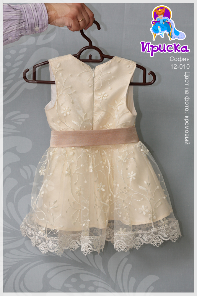 Декор: подол отделан дорогим кружевом. Атласный золотой пояс украшен бантом с галстуком и розой ручной работы.