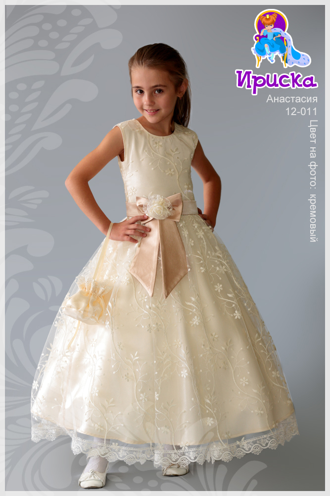 Декор: подол отделан дорогим кружевом. Атласный золотой пояс украшен бантом с галстуком и розой ручной работы.